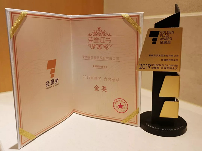 2019年10月26日,一年一度的金旗奖颁奖盛典在杭州举行。"蒙娜丽莎微笑节"品牌活动经过严格评选,从数百个案例中脱颖而出,荣获2019金旗奖内容营销金奖,充分彰显了蒙娜丽莎引领内容营销新风向,推动品牌公关创新发展的独特价值。