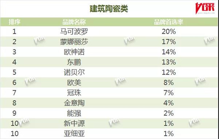 经过层层科学严格、客观公正的测评,蒙娜丽莎排名遥遥领先,最终获得建筑陶瓷类品牌首选率第二名。