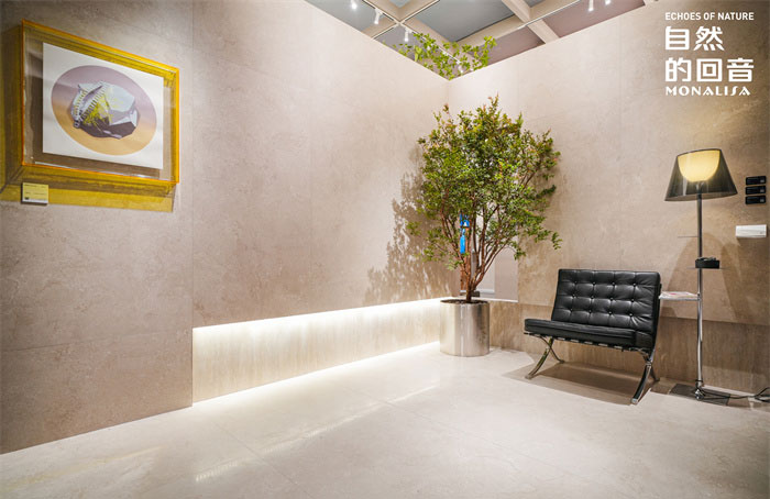 以设计师视角出发,展位精选蒙娜丽莎市场生命周期长,备受设计师青睐的经典石韵、波特兰洞石、奢石等系列原创设计产品,以“亲自然”的花色、质感美学设计和低碳耐用性能,构筑起无风格定义空间,实现建筑陶瓷在不同生活场景的全空间应用。