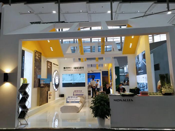 7月27日,第45届中国家博会(广州)在广交会展馆拉开帷幕。蒙娜丽莎-绿屋建科携成品家具规格岩板、透光岩板等系列新品参展,以“健康岩板”为主题亮相广州家博会,展位全岩板应用展示,给市场带来了家装新思路,引起展会现场观众的高度关注。