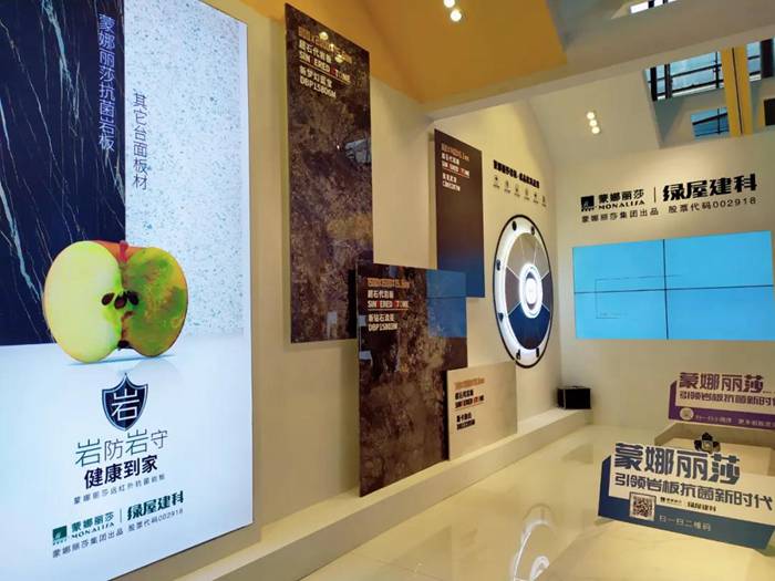 蒙娜丽莎“健康岩板”主题展展示了岩板成品家具应用空间、岩板定制家具材料、岩板高端建筑材料,以及岩板防霉抑细菌、环保零甲醛、防污易清洁、防火耐高温、耐用耐刮磨、时尚高颜值等优良性能,深得观众青睐。此外,在本次家居展上,蒙娜丽莎展示了即将新推的可发射远红外线、具有抗菌功效的“远红外抗菌岩板”,加深在健康家居领域的布局。
