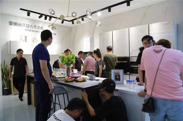在2019年7月8日-11日的广州建博会上,蒙娜丽莎超300㎡的定制馆成为建博会上备受关注的亮点。陶瓷大板、超石代岩板、集成墙板这三大新型材料在家居领域的应用让参观者大开脑洞。馆内涵盖客厅体验区、厨房体验区、卧室体验区、休息区、产品区的全屋空间整装展示,向消费者传递蒙娜丽莎超石代岩板代表的不仅仅是一种材料,更是一种全空间定制生活方式,一种属于未来家居的生活体验。