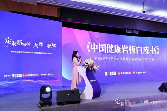 随着消费者对品质生活追求,环保被放在了家居装修的首位。岩板作为定制家居的新材料,它的出现解决困然家居界百年的甲醛问题,使得健康无甲醛成为可能。在本次发布会上,蒙娜丽莎联合网易家居、材料行业专家、设计师等,推出《中国健康岩板白皮书》。白皮书中显示,健康环保的产品已经成为家居标配,而超石代岩板是零甲醛新型环保材料,以及符合现代及未来家居的柔性化定制需求,具有强大的发展潜力万亿级的广阔市场待开发。