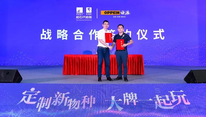 作为陶瓷板的先行者和推动者,从2007年开始相继推出陶瓷薄板、陶瓷大板到如今跨界家居饰面材料领域的超石代岩板定义健康家居,蒙娜丽莎在陶瓷大板及岩板领域深耕12年,拥有丰富的产品技术以及应用技术,吸引了不少定制家居品牌与其建立合作关系。在本次发布会上,蒙娜丽莎首次启动「定制新物种,大牌一起玩」的家居品牌合作新模式,并与欧派现场签订战略合作协议。目前,蒙娜丽莎与欧派、皮阿诺橱柜、韩丽家居、金牌橱柜等大家居品牌建立战略合作关系,一同做大健康家居产业生态圈。