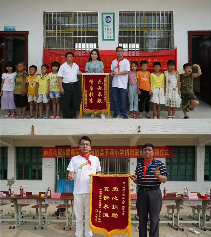 2019年6月18日,蒙娜丽莎集团携手爱尚计划圆梦分会,翻山越岭,抵达湖南省道县祥霖铺镇下蒋小学与白露塘小学,为那里的孩子送去105套全新的定制课桌及大量的教学物资、书籍、体育用品等,让孩子们的学习环境焕然一新。