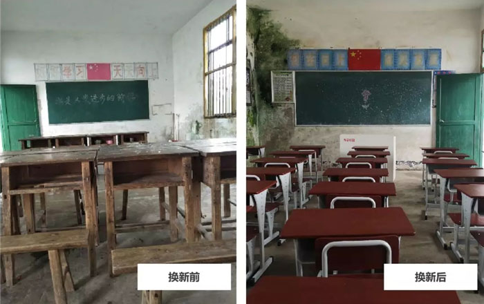 位于湖南省道县祥霖铺镇下蒋小学与白露塘小学,这两个“教学点”分别在两个村庄,地处偏僻,“一座小平房、3位老师、几十个学生”,这几乎就是整个学校的所有,简陋到让人无法想象。从幼儿班、一年级、二年级由两位老师完成所有的教学课程,这种“复式教学”的情景,早在几十年前、我们的上一辈才见过,而这却是很多偏远山区里普遍存在的状况。年久失修,课桌残缺摇晃、教学设施简陋,成了普遍山区学校的真实写照。孩子们的愿望很简单,希望能拥有一套舒适的课桌椅,在平坦的桌面上学习。