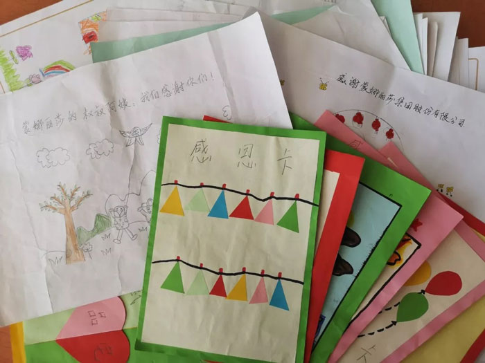 此次蒙娜丽莎联手的“爱尚计划·爱上学”活动分三站,分别前往银山小学回访、为下蒋小学与白露塘小学捐赠课桌。志愿者们的到来,为当地孩子带来新的希望。看到眼前崭新的课桌椅,孩子们的眼里绽放着光芒,已经迫不及待的坐上了椅子,一张张灿烂的脸庞洋溢着掩不住的笑意。一些孩子们拿出准备好的红领巾,紧张却非常认真的给志愿者们系上,这是孩子们表达敬意的方式,质朴而真诚。另一些孩子拿出自己亲手制作的感恩卡送给了各位志愿者,小小的卡片上是孩子们稚嫩的字体和漂亮的手工,这是孩子们表达感谢的方式,纯真而可贵!