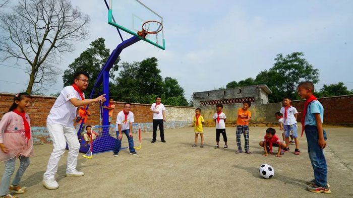 随着钟声的响起,志愿者为孩子们准备了一堂体育课——足球课,孩子们在操场上恣意奔跑,尽情撒欢,笑声充满着整个操场。在这里大部分的学生是留守儿童,与父母长期分开,志愿者们为他们精心准备了另一份礼物——“儿童绘画套装”,并为孩子们上一节以父亲、家为主题的美术课,表达他们对父母的思念,传达他们对父母的爱意。对于下蒋小学来说,这节美术课更是他们第一节的美术课,同学们上起课来特别的认真,一笔一划把自己的爱意画出来。虽然学校条件艰苦,但是孩子们对于求知的热情丝毫不减,教室里孩子们使用着崭新的课桌椅和绘画工具完成老师布置的学习内容,认真的模样感染着每位志愿者。