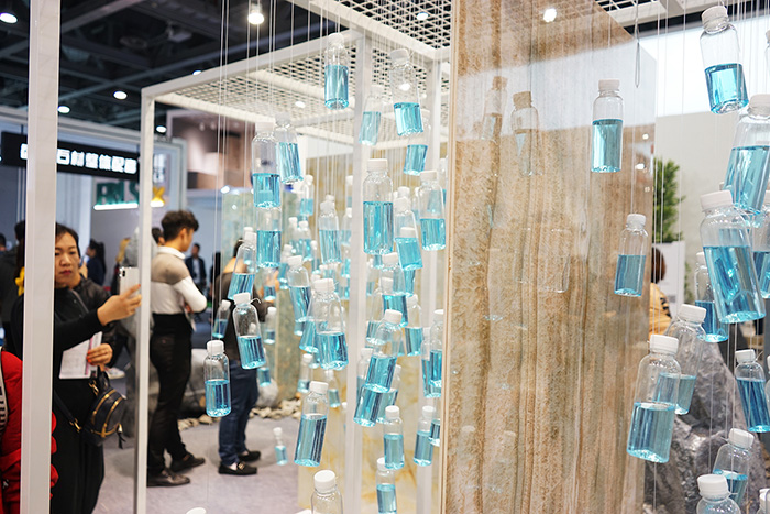 没有富丽堂皇的门头,不见一尘不染的样板间,只有清脆的虫鸣鸟叫和模拟生态的环境布置,让蒙娜丽莎的展位在一片展商中显得格外宁静、个性十足。展位设置环境装置,以多元的形式进行产品展示,在场地中搭建出了沙丘、绿洲、石林和湖泊的概念场景,打造出充满自然气息的空间。多款明星产品置身其中,与不同的地形主题对应,移步换景,凸显产品源于自然又能和自然和谐相融的理念。