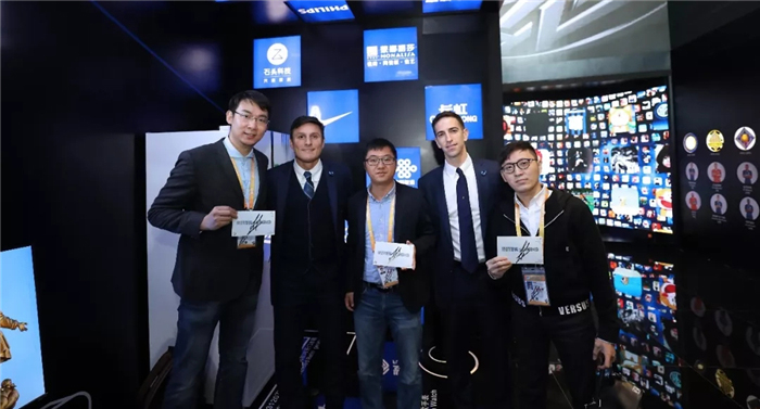 蓝黑色为主色调的国米展位,造型独特,以创意性与高科技感为来宾讲述一个百年俱乐部的传奇故事,讲述国际米兰与中国的渊源,这其中当然少不了国际米兰与蒙娜丽莎的故事。