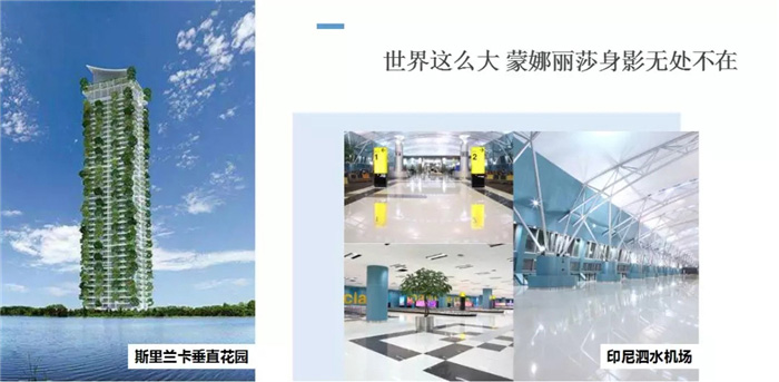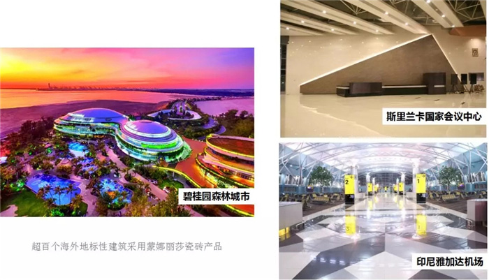 而在2016年到2017年,蒙娜丽莎的意大利生产基地及研发中心也相继成立,通过吸收着世界先进的陶瓷制造技术与理念,进一步提升企业创新能力,带来高价值、高品质的产品。如今,众多海外地标性建筑都可以看到蒙娜丽莎的产品,如马来西亚碧桂园森林城市、印尼机场、雅加达机场、斯里兰卡国家会议中心等超百个项目。
