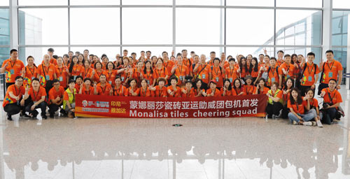 2018年8月17日,蒙娜丽莎集团带领由消费者顾客、企业员工代表组成的百人“亚运助威团”,在广州白云机场包机出发印尼雅加达,观看第18届亚运会开幕式,为中国健儿加油助威。