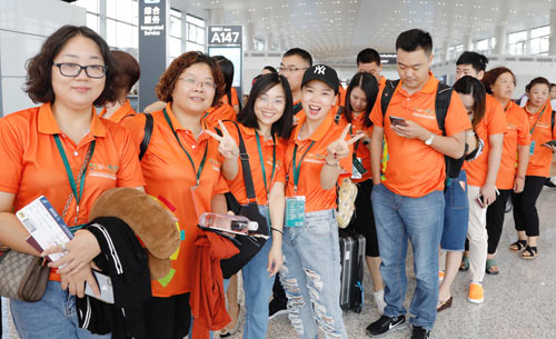 ▲亚运包机百人团集结完毕