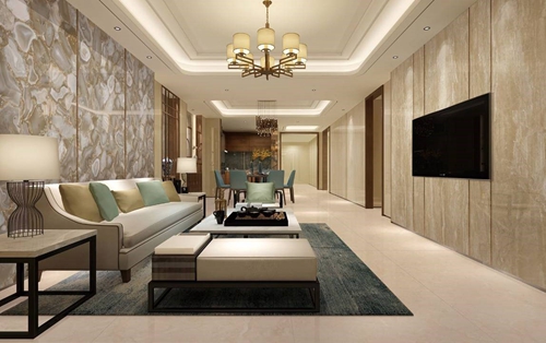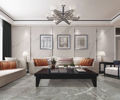 陶瓷大板背景墙具有很好的视觉延伸性,超大规格尺寸能最大限度地承载丰富的石材纹理和细节,从视觉上给人一种空旷,延伸的感觉,呈现出一种华贵大气的效果。