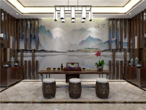 对国画山水情有独钟的王先生选择以蒙娜丽莎瓷艺画把水墨风情搬上了电视墙,生出一种宁静悠远的意境。