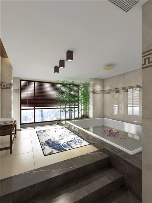 浴室里XXL码的浴缸,拾级而上沐浴,让人不禁联想起古时皇宫里的华清御池,连沐浴也是十分尊贵的感觉。