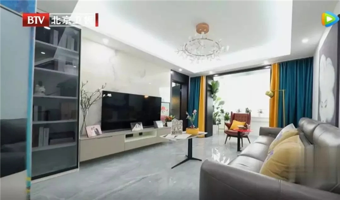本期的设计师洪婧被称为“色彩的魔法师”,善于调用各种色彩来改变空间感官。在选择装修材料的时候,她首先考虑了艺术气息浓厚的蒙娜丽莎,并走进蒙娜丽莎展厅,亲身体验产品特性。