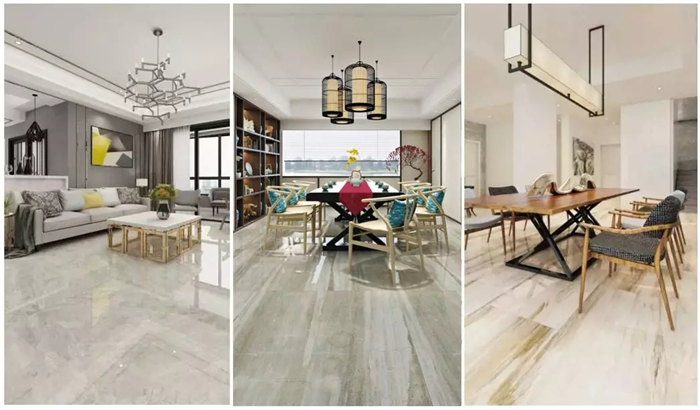 因为业主家是二次装修,地面特别选用了蒙娜丽莎薄砖,其厚度只有5.5mm,在材料强度及装饰效果优于传统瓷砖的前提下,薄砖给室内带来了直接可观的整体扩充效果。