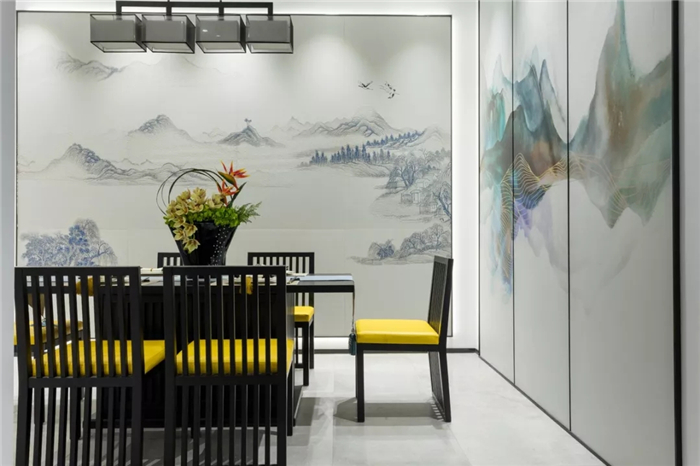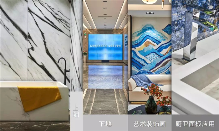 在大规格陶瓷的表面进行彩雕、堆雕或喷绘的工艺处理,釉面色彩效果逼真,防火防潮还易于打理,为空间增添了浓厚的艺术观赏性。
