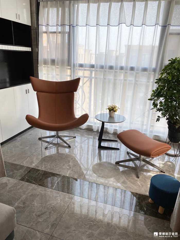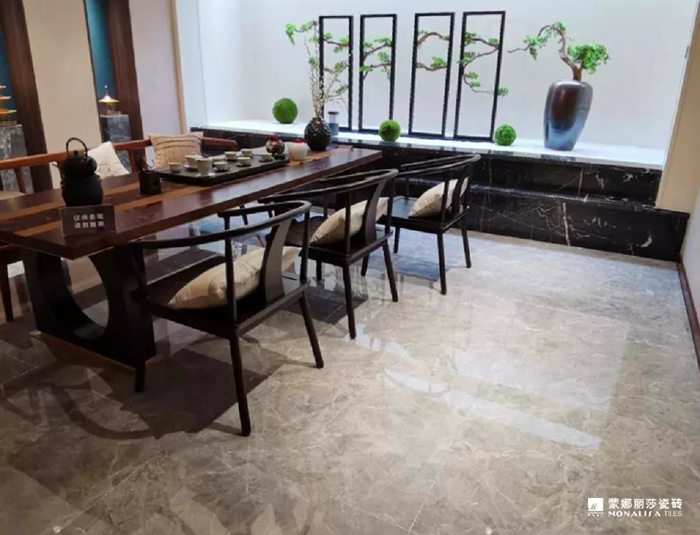 从客餐厅到茶室均采用灰白色的两款罗马宝石搭配,整体十分自然时尚。