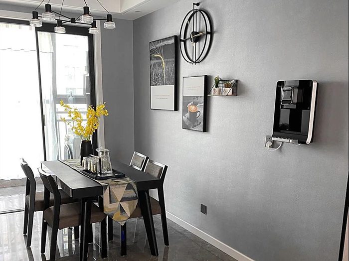 厨房为开放式设计,陶瓷大板的桌台,让空间感觉更干净整洁。