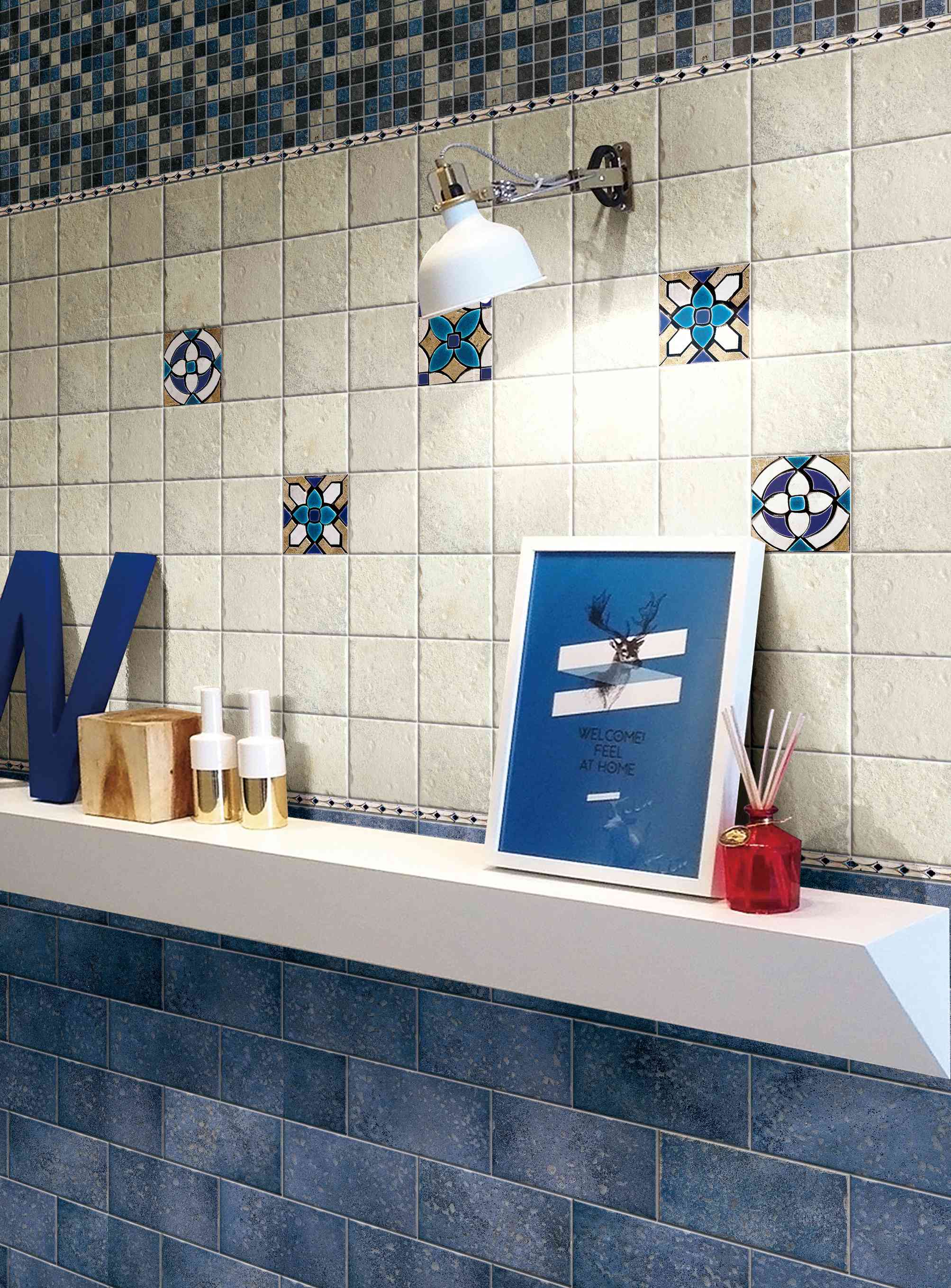 产品选用意大利优质原料和釉料,彰显复古之风, 夺目的色泽更是经历重重仿古工艺的历练方能尽情展示;手工模具雕琢的起伏变化伴随着砖面云彩晕染的色彩过渡, 在纹理与颜色巧妙融合的同时仿佛瞬间转换了时空, 将地中海的休闲生活跃然于砖面之上。