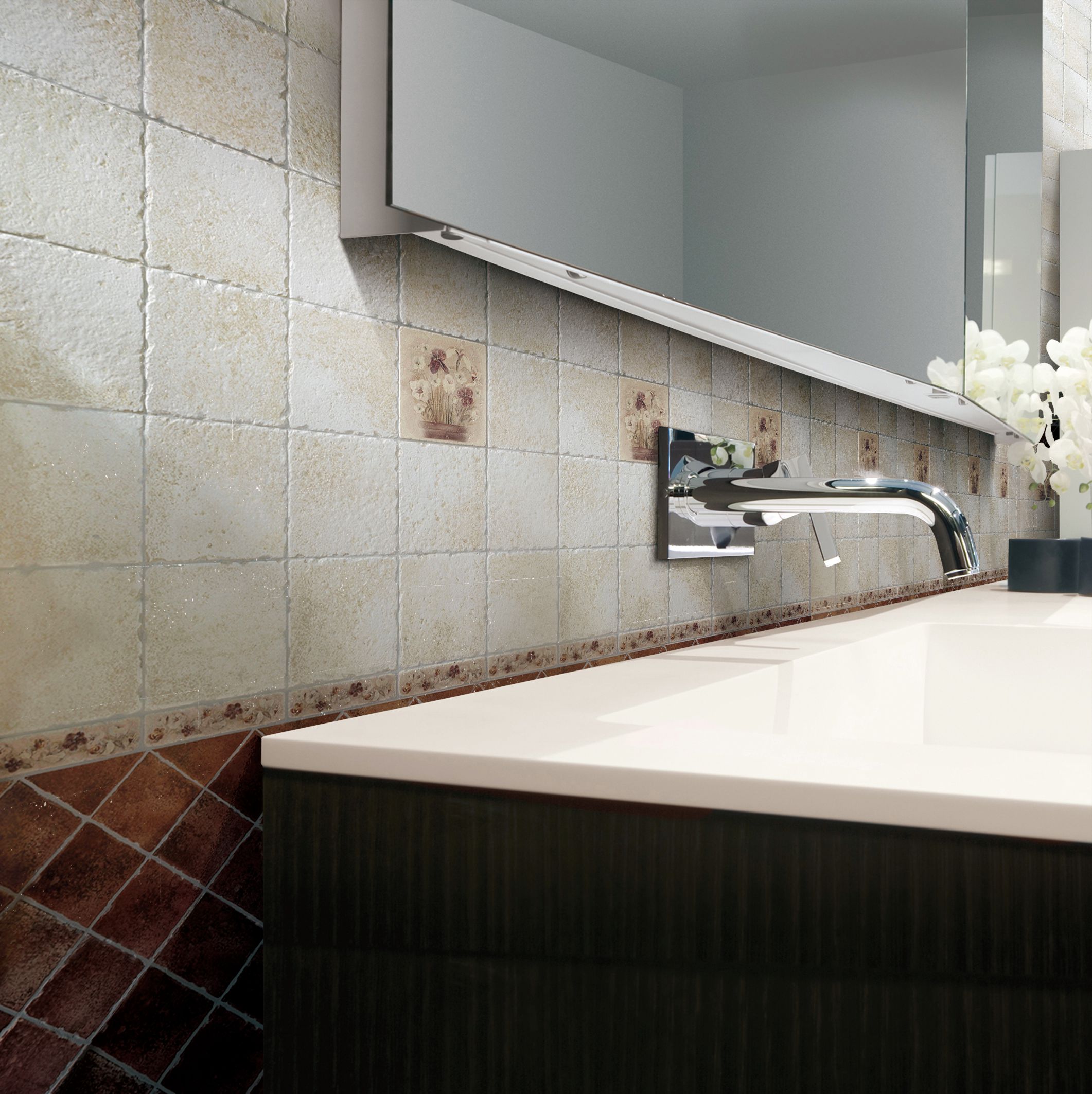 产品选用意大利优质原料和釉料,彰显复古之风, 夺目的色泽更是经历重重仿古工艺的历练方能尽情展示;手工模具雕琢的起伏变化伴随着砖面云彩晕染的色彩过渡, 在纹理与颜色巧妙融合的同时仿佛瞬间转换了时空, 将地中海的休闲生活跃然于砖面之上。