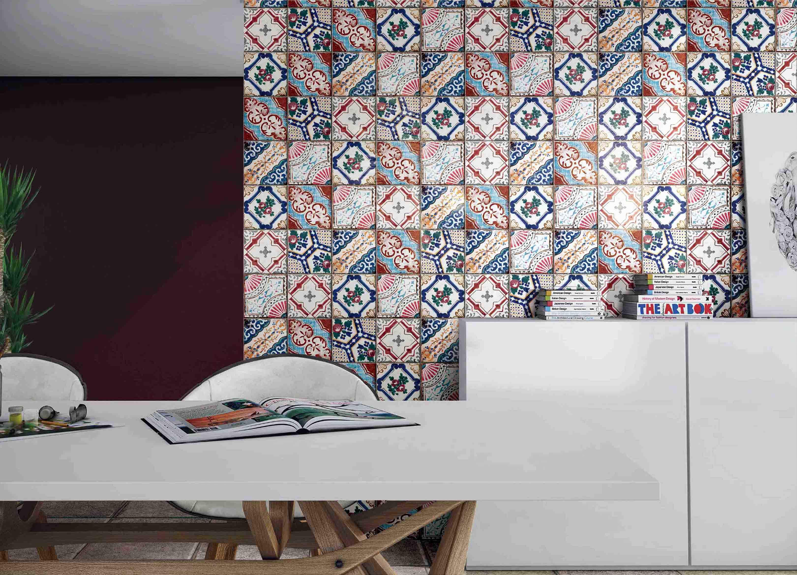 产品选用意大利优质原料和釉料,采用经典“烤面包”模具工艺,表面是采用光雕造痕和数码喷墨打印技术,还原先进的生产工艺确保每一片瓷砖的釉面色彩鲜艳,图案自然丰富,演绎着自由的组合和曲线的艺术。