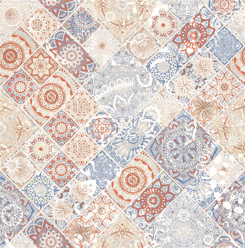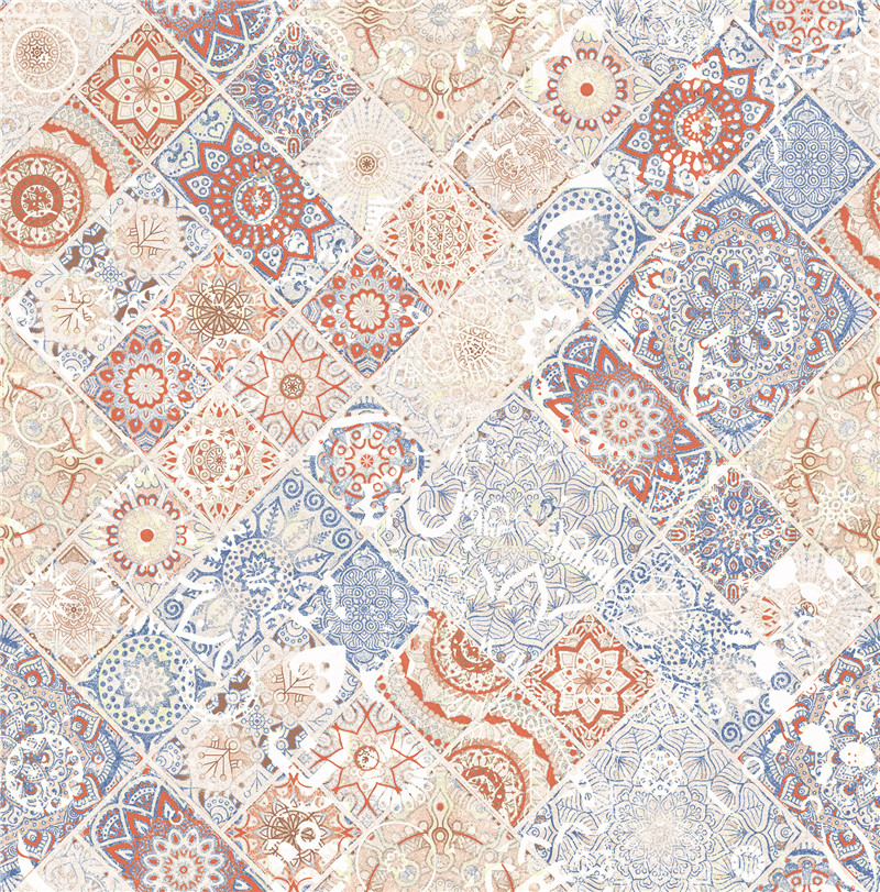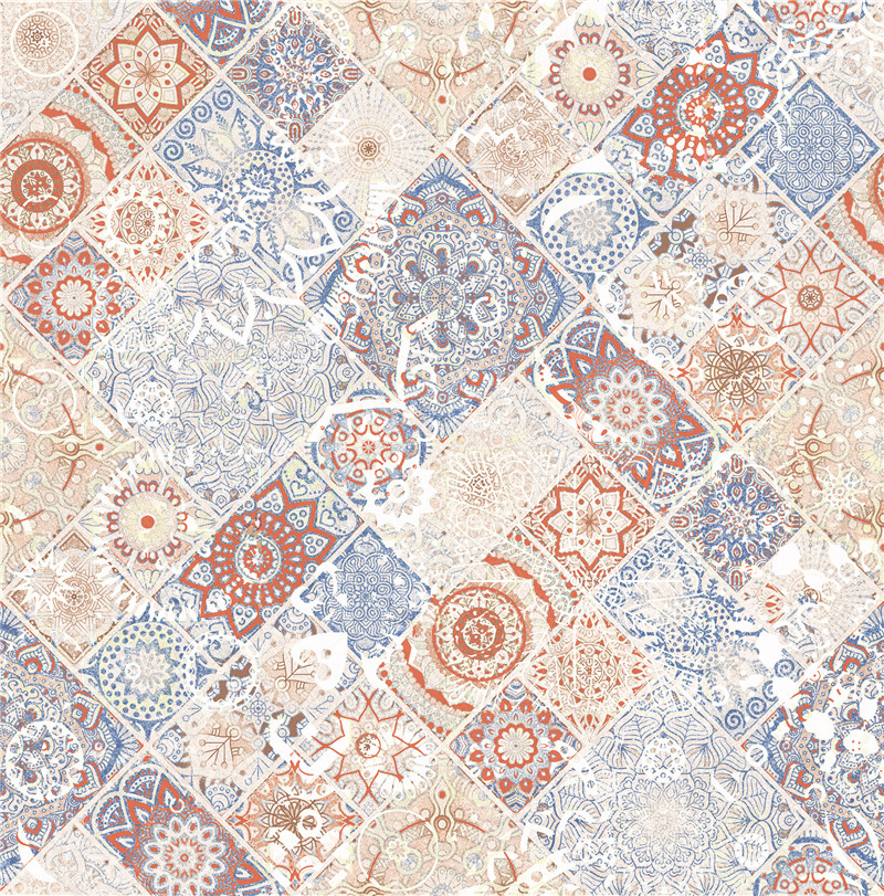 来自敦煌艺术的瑰丽色彩与波西米亚的自由浪漫,红蓝菱形交替铺设,延伸视觉动线,融合了 自由奔放的吉普赛精神、繁复的花砖美学以及霓虹般的彩色碰撞,打造一个充满异域风情又富 有艺术感的居住空间。