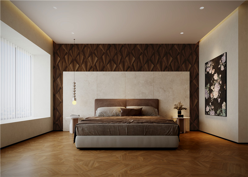 「无极·木歌」系列以超越常规的视角,重新诠释自然与空间的关系,将自然的原生形态,凝练为设计的韵律。运用创新的数码模具精致设计,让木纹肌理在光影间生成细腻的韵律,诉说着复古与前卫并存的空间诗学。在这里,静谧与奢华共处,秩序与野性相生,空间最终成为一处蕴藏着无限诗意的力量场域。