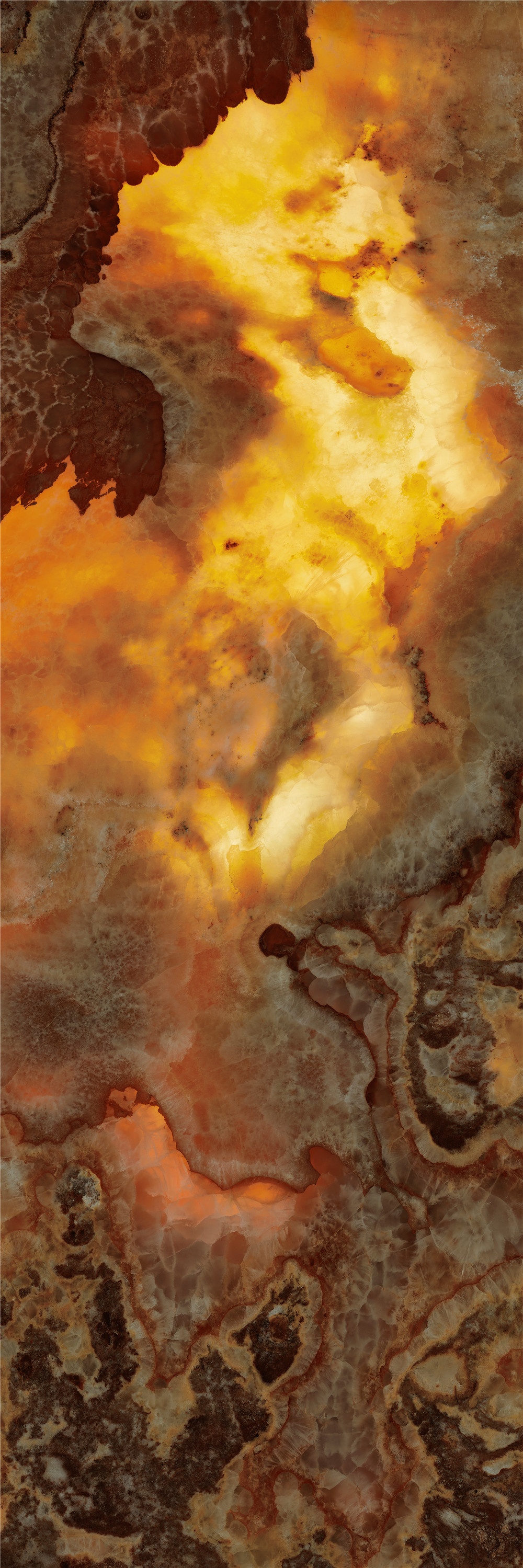 【透光石系列】推出900x2700mm大规格,以琥珀为灵感,精准还原其温润如蜜、色泽如金的质感。通过特殊工艺处理,砖面呈现出细腻的光影过渡效果,如同阳光穿透琥珀内部,带来通透灵动的视觉体验。光线在砖面自然漫射,营造出静谧深邃、层次丰富的装饰氛围,赋予空间独特的艺术感染力。