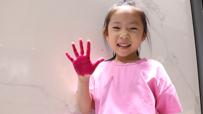 孩子可以接触之后立即洗手消毒,后续还有护手霜的防护,可以比较大程度地减少油性颜料的对皮肤的侵蚀,但瓷砖地面却没有这一系列的护养措施呀。