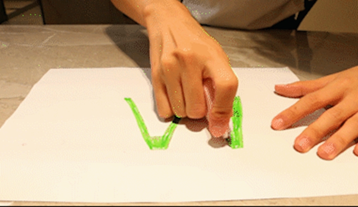有一次,我陪着孩子一起做美工,我需要用小刀帮孩子在一张白纸上剪切出一个“M”字的图样。于是,我拿出小刀使劲一划~