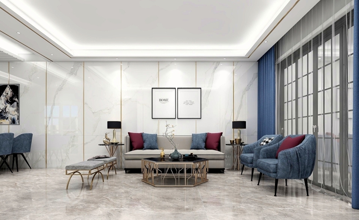 1500×1500mm蒙娜丽莎“罗马宝石”系列瓷砖的尺寸够大、边角够直、砖面够平整,铺贴后留下的缝隙极小,不容易残留难处理的污垢。