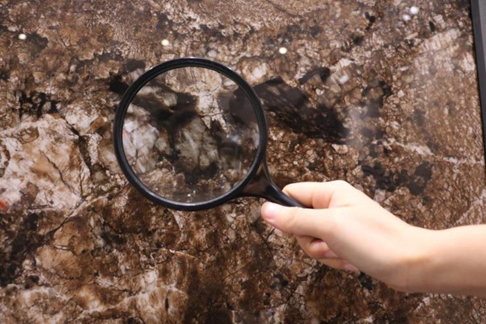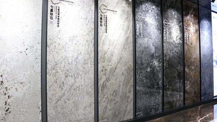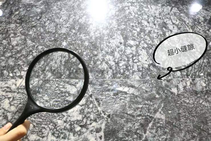 轻轻敲几下,砖面传来非常轻微的声音,很清脆,说明“七星珍石”的瓷化密度和硬度高,属优质材料。