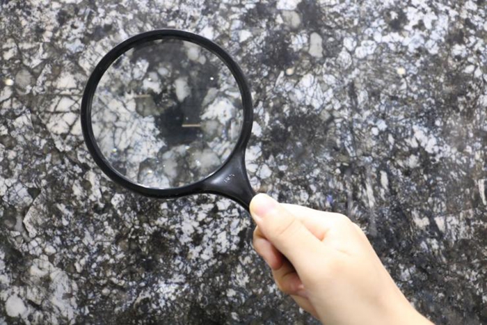 我一个没注意,将放大镜晃到了瓷砖缝隙处,哪知这里还有惊喜!两块“七星珍石”拼贴,之间的缝隙非常非常小,要不是手里有放大镜,很大可能神经大条如我就忽略了呢。