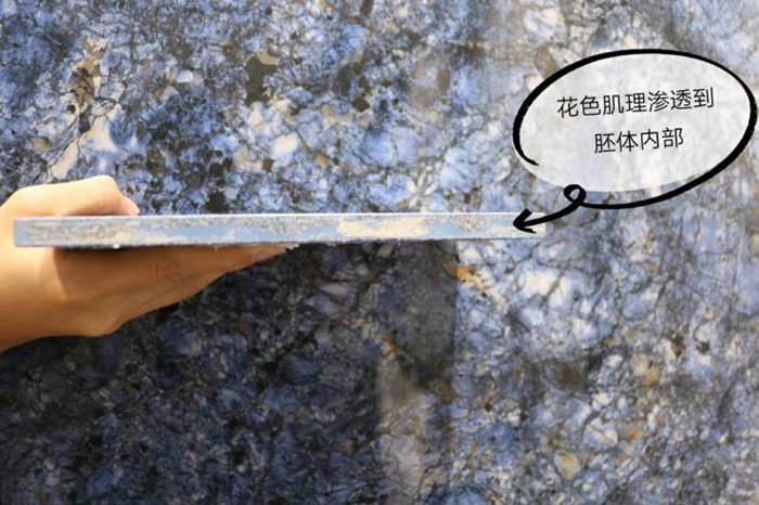 俗话有说:石以蓝色为尊,蓝色石头在自然界中最为罕见和珍贵。这款梦幻宝蓝铺贴在墙上简直就是一幅艺术画,900×1800mm大规格尺寸几乎看不到瓷砖拼贴处的缝隙,瓷砖的拼接缝隙极小,纹理看起来流畅大方,梦幻宝蓝给人的感觉果然高级、奢华!