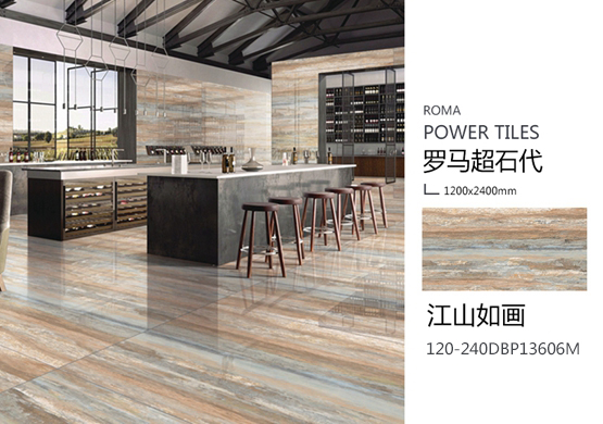 “罗马超石代系列”多款原石色系配合1200X2400mm大规格尺寸的纹路,更易设计创造出不同的设计风格,其应用创意空间更加宽广。