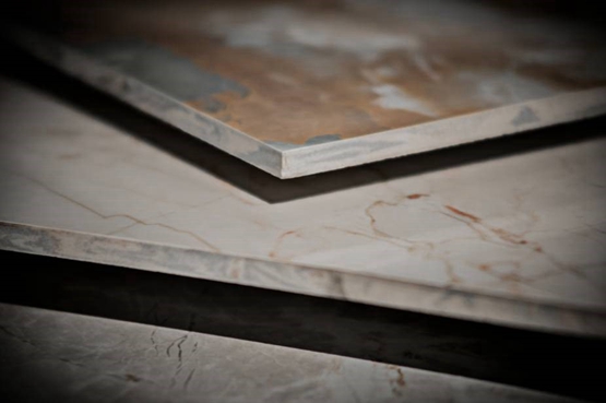 通过采用进口渗透墨水及通体布料技术,墨水渗进面浆层,实现产品肌理上下、左右、前后的立体延伸,表里如一,媲美石材。