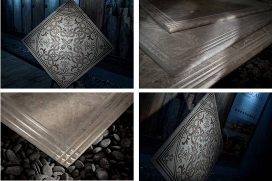 一石多面使得罗马宝石不再满足于单纯的平面铺贴,更可以通过倒边、倒角、开槽,立体异形花纹呈现各种立体装饰效果,变成了可能。