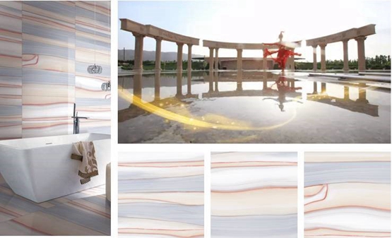 ▲罗马宝石之玛瑙红玉:拥有的高贵纹理,水墨般的纹路,白色与红色交织,形成一幅水墨画。图案效果更接近于自然天成,装饰效果更突显强烈的文化韵味。