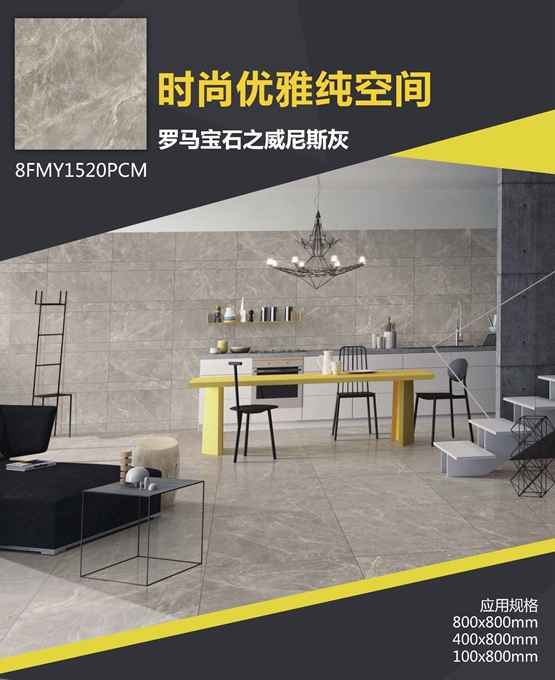 ▲罗马宝石之威尼斯灰:带给空间温暖、优雅、庄重而不失雅致的视觉体验,就如同欧洲的古城堡,充满历史感,让空间既时尚又富有怀旧感。