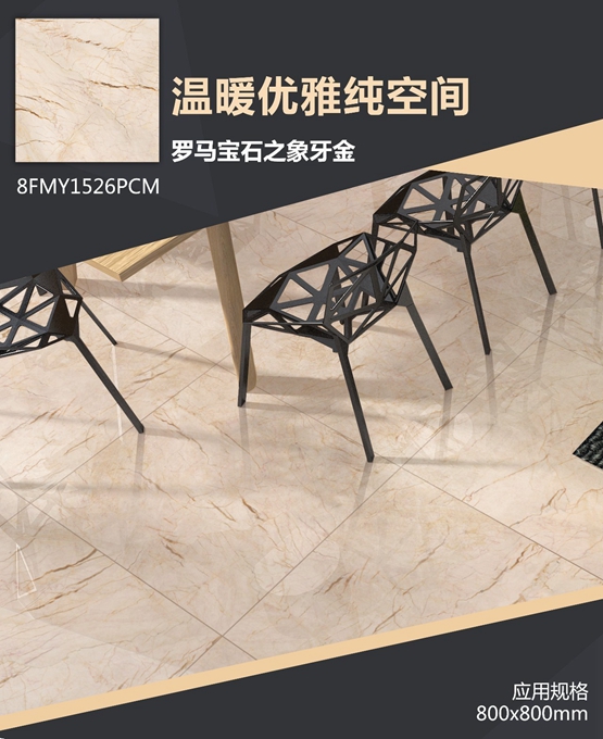 ▲罗马宝石之象牙金:金色中透着一点象牙的黄,温暖又不失优雅,低调中透着奢华的美,多用于室内外墙地面装饰。